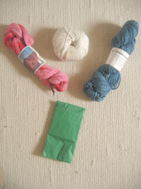 1) 1 ball Calmer in white (great for the Aura cap or Shedir from last fall's Knitty surprise issue)