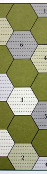 If we then look at the diagram of the throw, we see that the width of the throw is equal to 4 hexagon diameters plus 3 hexagon sides. Since the hexagon diameter is equal to twice the side, the width of the throw is equal to 11 times the width of each hexagon side (8 + 3). Erika Knight gives the width of the throw at 45", so each hexagon side is (skip the calculator) a little more than 4". And the diameter of each hexagon is 8" (twice the length of the side).