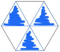 If I crudely color in a couple of the triangles you can see that the widest point of the hexagon is the same length as two triangles and one side of the hexagon is the same length as one triangle. Fun, huh?