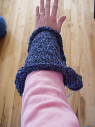 And in an effort to move more of my too numerous wips along, I've begun to reknit the sleeve of my bumpy blue phildar sweater. I'll be knitting the sleeves straight, giving up the bell sleeves in the hopes that the yarn will hold out. I'm not feeling too confident though, especially since I'm trying to save my good yarn karma for Banff! Think the yarn gods will look more kindly upon me if I buy more of this yarn in a different color to make another bumpy phildar sweater??