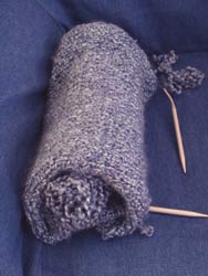 Lots of new projects going on and coming up here at the blue blog! So many that I can't seem to settle down and just knit. Although I have been knitting off and on over the last few days, I probably spent more time organizing the stash and planning my next few projects. Besides thinking about the yarn I'll be claiming from my ribby cardie and getting the yarn together for my Must Have Cardigan, I managed a few more rows on the tiny-gauged, wrist-pain-inducing baby sweater. With 198 stitches across (it's a wrap style-sweater, so that's a back and two fronts in one piece) and babying my wrist all the way, I'm taking this an inch at a time! Also made some progress on my blue phildar sweater, getting up to the raglan decreases on the back. But I got confused on the numbers (must... use... row... counter!) and put it aside. It is impossible to count rows in this crazy bumpy yarn!