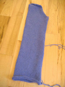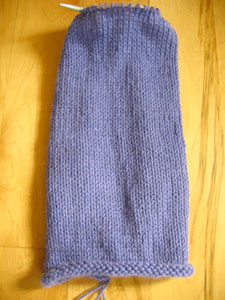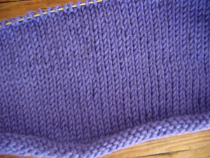 This was the only knitting I could do last week when my nose was really running. I could lay with my head tipped up, resting on the back of the sofa, and just knit with my hands (which was about the only thing working last week). No looking, no thinking, no shaping.