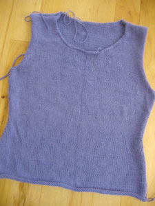 I tried it on again last week and decided it was okay after all (I figure if I want something snug, I should find a more elastic yarn and knit another nothing but a t-shirt!). So this one's back on the knitting shelf, ready for when I need a break from all that lace and silk. Simple stockinette to the rescue!