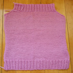I've got another ball of the yarn on its way to me from The Knitting Garden and Jenn gave me some leftovers from her paper hoodie, so barring any unforeseen difficulties, I could have this tank done for the weekend! Especially if B keeps helping me.