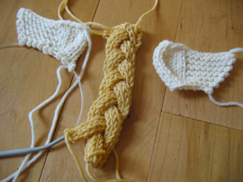 And only 30 days until Halloween. (And you thought Christmas was a busy time to be a knitter!) I started wee one's baby Viking hat but I'm knitting it along with my beginning knitting class and I can't get too far ahead of them so I couldn't knit too much more on it. Instead I moved on to making the wings and the braids.
