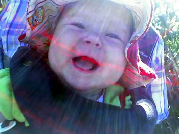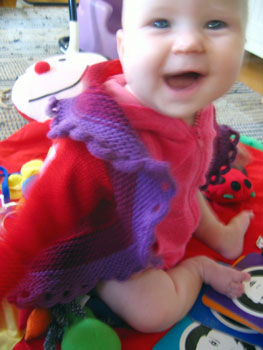 Wee one! And she should be sporting a new sweater! I just got the yarn...