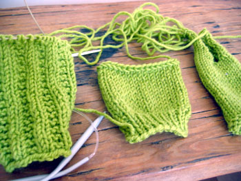 I'm working with this green Shelridge Farm worsted wool (yummmy!). I've swatched and swatched and swatched and changed my plans over and over.
