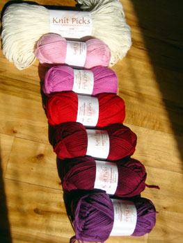 It's KnitPicks Swish Superwash for a baby Pinwheel Sweater. I'm so excited about this project. It can be my go-to project when my own Rhinebeck sweater has issues. Which it's having now, so let's cast on for the pinwheel sweater, shall we?! Hee, hee.
