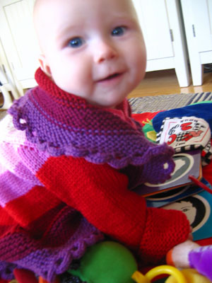 Fact: all my recent (and best) finished knits have all been for wee one. Exhibit A: the pinwheel sweater. Exhibit B: the wee hallowig. Exhibit C: the baby viking hat. Exhibit D: the baby shrug. Need I say more?