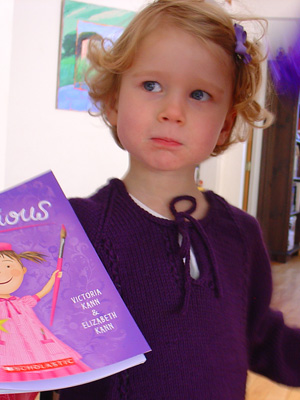 So, when a old knitting friend of mine brought me the almost-finished pieces of a beautiful purple sweater that wasn't going to fit her daughter anymore but would fit mine, I knew I would have to enlist the help of Pinkalicious' friend, Purplicious to convince my girl to wear this sweater. (Purplicious likes pink too. She likes it because it is "powerful" and can change blue into purple.)