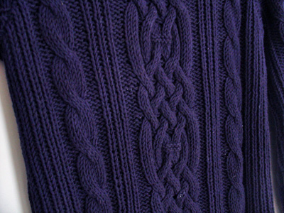 The dress is actually a pretty awesome cable knit. But very sensibly, my mom's friend would prefer that it were regular sweater length. After a quick consultation with my knitting group, I've got a plan. I'll be carefully cutting off the lower half, being sure to secure the stitches and then reclaiming a bunch of the yarn to reknit the ribbing. As long as it doesn't involve any grafting in that cable pattern, I can do it!