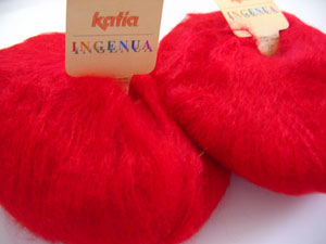 The first is a ruffly, side-tie wrap sweater from Edition Rebecca #8. I've got some lovely Ingenua Mohair to use for it that I got on sale at a Wild & Wooly clearance last year. It's red. I like red.