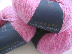 And then an irresistibly cute little shirt-style sweater with deep ribbing from Laines du Nord Simple Knits #5. For that one I've got some pink Jaeger Luxury Tweed I found this year at the same clearance sale. I knew it was safe to buy the yarn, because I simply cannot keep pink in my stash - it will get knit!
