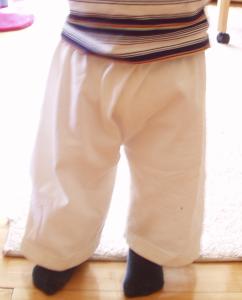I've been busy working on the boys' kwikies and fast pants. I finally finished a second pair of grey kwikies so the boys can match. They went real fast this time. I think I'm getting the hang of this! And as the weather is getting warmer and the sun stronger, I figured another two more pairs of white fast pants were in order. They're just the thing for running around on the playground on a hot day, or eating ice cream on the 4th. Loose and fun, light and, most important, easy to wash!