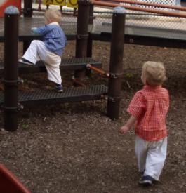 And now some action shots: B in his kwikies and S in his summer fast pants!