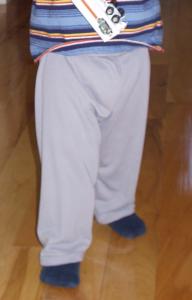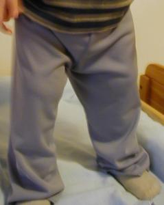 The boys need some lightweight spring/summer pants to replace some pants that they already have and are about to outgrow. So, I picked up some knit fabric online, studied my Kwik-Sew Sewing for Toddlers, and closely examined the pants I'm trying to copy.