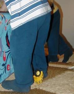 I did no sewing last week, as the boys were having trouble sleeping and I didn't want noise from the sewing machine in the next room to add to the problem. Actual sewing content will have to be limited to this cute pic of B lounging in his fast pants. He's telling me to move out of the way so he can see Blue's Clues.