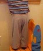 So far this prototype pair has come out a bit short in the crotch and the seams are all a bit puckery, but otherwise, I'm really liking them. And B doesn't seem to mind them either!