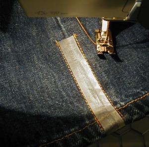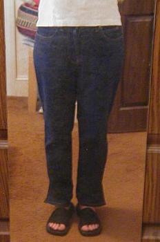 I've got these old jeans. Well, they're not vintage old, but they are 1998 old, which is old enough that the styling is a little 'not quite right', if you know what I mean. I like the jeans and they still fit me (you'll agree that this alone is reason enough to keep them!), but the one thing that really keeps me from wearing them is the cut at the ankle. Although they're not tapered in at the ankles (they're not that old), they do date from the pre-Gap-bootcut era and seem too narrow. They've also shrunk a bit from many washings and are so are a bit short.