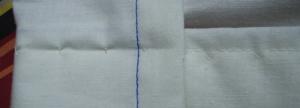 I finished rehemming some of the curtains from my stack. I was going gangbusters with the blind hem stitch until I ran out of white thread! So, I moved on to redoing the seams on my old curtains. New seam, old seam; what a difference. I finished a few and went to hang them up to see how they looked and wouldn't you know it, I sewed up the pocket for the pole. Dooh!