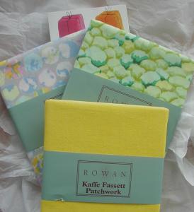 These gorgeous fabrics are by Kaffe Fasset and were sent to me by the oh so fabulously thoughtful Kerrie (who is so lucky to live in Rowan-land!). I don't yet know what to do with them.