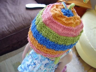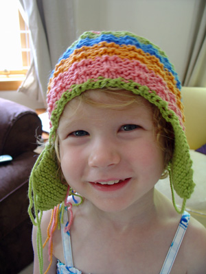 I've been on a bit of a Goldilocks roller coaster ride with wee's Flap Happy Hat. First, it was too big. Then, it was too blue.