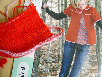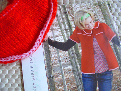 I knitted a good three inches on the start of my Candy Stripe Jacket. The yarn is the to-die-for soft Jade Sapphire Cashmere. I wanted to get the exact yarn as in the pattern picture, but the Spud & Chloe yarn isn't actually red like I'd thought from seeing the pattern picture on my monitor, it's more of a dark burnt orange. I had so fixated on that red color that I was determined to find something at Purl that would match the image of it in my mind. There was some Blue Sky Alpaca Dyed Cotton that I rejected as too bulky and some basic Rowan cotton yarn that wasn't going to be special enough. They didn't have enough of a shade of Koigu KPM I'd considered and some Koigu Kersti was going to cost a fortune (there's like no yardage on those hanks!). In fact, it would be the same price for me to just make the sweater in cashmere. Mmmm, make the sweater in cashmere, mmmmmm. Once I'd had that thought, I was pretty much done shopping. They were knitting up a swatch of the Jade Sapphire which looked and felt marvelous and it came in a bright coral color that always appeals to me. Sold!