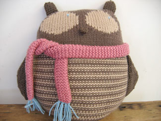 Otto Owl from Lucinda Guy's And So to Bed... in Rowan Cashsoft DK wee one's birthday babe from Knitted Babes in Jaeger Matchmaker 4ply Tiger and Lion Bendy toys from Sirdar's "Things to Make" in Debbie Bliss cotton dk Baby Bobbi Bear from Blue Sky Alpaca