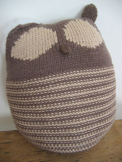 Otto also pleased me by taking a good deal of stuffing. We all know that stuffing only comes in those crazy giant bags the size of your bedpillow. And knitted toys usually only take about a handful of stuffing. Which leaves all of us knitters trying to pawn off our extra poly fiberfill on each other! But dear old Otto really holds a lot. A few more Owls and my bag of stuffing may be small enough that I could actually stuff it somewhere!