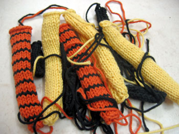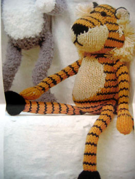 S wants a tiger and B wants a bee. Interesting choices, no? I've hunted through my kiddy knitting books and found a bug pattern (from Jess Hutchison's out-of-print Unusual Toys booklet) that'll do for the bee. Now that we have pattern, B keeps saying "can we go to the yarn store?" And I rub my hands together like Mr. Burns from the Simpsons and say, "yeeeees, exxxxcellent."