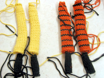 Instead of knitting on them today, I'll blog about my progress. The boys love seeing the pictures of the things in the house on the computer. The pattern is from Sirdar's booklet "Things to Make" and they're called "Bendy Animals" because they're supposed to be kinda posable.