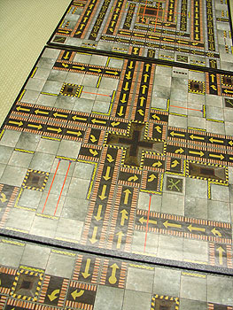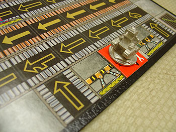 Last night's game of RoboRally had to be paused on account of it being 9pm and way past bedtime. I could only get the boys away from the table if I promised to snap pictures of the game as we left it so we could set it up again and continue it today. B's TrundleBot (above) is way ahead, but S and I still have hopes of getting our little robots all the way through the maze of conveyor belts and lasers safely.