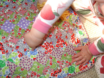 By the way, that cute fabric on the chair next to wee one is from a doll quilt that wee one/Sally got for her birthday from knitting and quilting buddy Carol. Isn't it precious?!