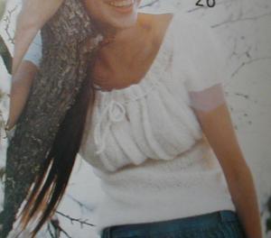 After seeing Carolyn's new halter, I've been thinking about something similar. Strech marks prevent me from doing the exposed navel thing, but this little top from Rebecca # 24 seems like a good compromise.