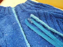 On to the ribby! Got the boys set up with some morning cartoons, got out the seam ripper and went to work on that zipper.