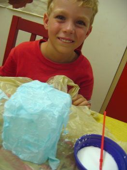 B didn't want to feel like he was missing out on the fun but we were out of half-gallon milk jugs and he's not quite as into the crafting as his brother, so he just had me do one of the other crafts in the book for him.