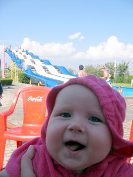 To cool off, we visited a local water park. The boys had a blast on the slides (not this fast one though - that's my brother-in-law flying out the bottom!) and it was a refreshing and sand-free break from the heat of the beach.