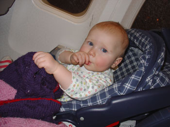 The kids were so funny on the flight back home! Wee one squirmed unhappily in her wee seatbelt (so cute) but once she was in her baby basinette, she played with a screw in the wall for about twenty minutes and then passed out. Phew!
