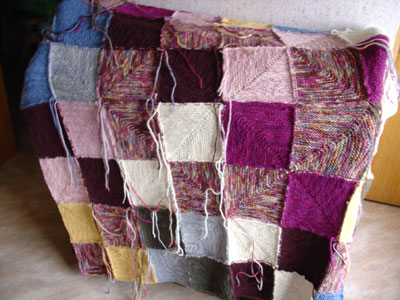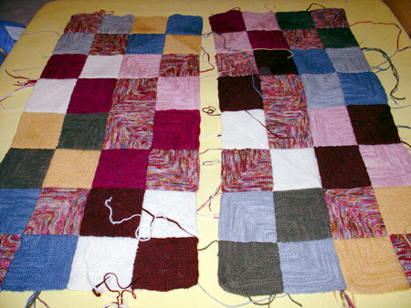 I'm down to about 100 ends left to weave in. Seriously, the back looks so much better than before that it seems practically finished to me! All the remaining ends are in corners where four squares meet and require a little more careful attention to ensure that all the joins look nice and neat. I left them to the end so I could work on them calmly once the majority of ends were already gone and the whole back wasn't quite so overwhelming and scary. If I can get the final ends woven in in the next 48 hours, it'll be a wonderful way to finish off another year of knitting.
