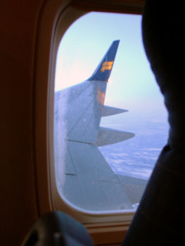 This is cool. We left Iceland at about 5pm and arrived in Boston at the same time. It's a 5 hour flight to America and there's a 5 hour time difference between the two countries. Which all means that it was 5pm for the entire trip. The view out the window was eerily constant - the sunset frozen shortly before sundown, the sky turning dark only as we finally turned to fly south down the eastern coastline of the US. Local time 5 o'clock.