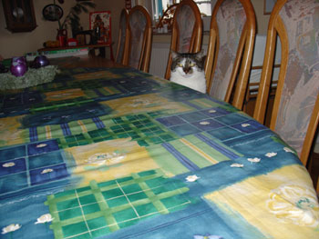 Nick the Cat hopes that if he saves his seat early, he'll get some of Christmas dinner. Dream on, Nick.