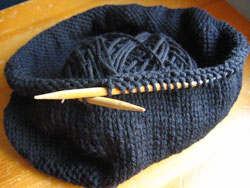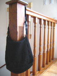 Who starts a felting project in 90 degree weather? Well, after finishing the Harry Potter scarf and Clapotis, I realized I'm left with only cotton yarns on the needles. That just won't do. I've had this plan to knit a quick black bag for myself for a while, as my little black felted Gap purse has started to have holes in it from its five years of use. The Cascade 220 has been sitting on my desk for months waiting patiently and as I went to put the needles for the Harry Potter scarf away, it caught my eye, and I decided it was time.