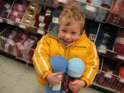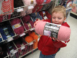 Another trip to the craft store with the boys! After the now traditional discussion in the backseat of whether we were going to the crap or the crack store (S: "it's crack"; B: "no, it's crap"; S: "crack!"; B: "crap!"), we arrived without resolution at the A.C. Moore. Can you tell that the boys like shopping for yarn at the craft store?