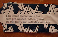 I know we're spring flinging, but there's snow out here and hubby's feet are cold. So yes, I'm knitting more big, bulky socks. I taught a sock class at my LYS recently, and it's got me knitting socks again. And I'm liking it. Plus, they're Peace Fleece. I couldn't resist. There's so much Peace Fleece around blogland these days (my chickie masala, Mary's grass roots, Sandy's zarya fog, Kerstin's moscow magic pink, Erica's samantha-katya pink...), I figured I needed more. For these socks I'm using negotiation grey (don't you just love these names?!). Check out the cool label that was on one of the skeins.