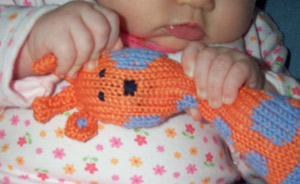 Send pictures of adorable baby looking cute with hand-knitted gift.