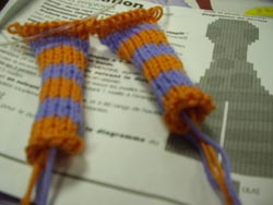 At first I found the duplicate stitch to be pretty slow going, but after a while I got the hang of it. Especially after one of my fellow Knitsmiths reminded me that no one will ever see the wrong side of the work, cause it'll be all stuffed and sewn up. Oh yeah! That makes the thought of weaving in all those ends slightly less paralyzing.