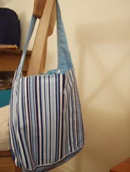 Just call me the bag lady, 'cause I got another gift from my secret pal - a cute little tote bag (from Target, I think - gotta love Target!). It's striped and blue (my two favorite things) and is perfect for bringing my knitting to the playground. Thanks secret pal!