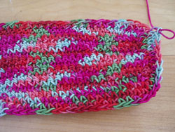 It's so beautiful - every stitch is a new color and looks so amazing with all the stitches around it. I think the single crochet really shows this yarn off well. Despite the yarn being a sleek cord yarn, it's not too stiff or awkward to handle. In fact it's a real pleasure to work with. And it's perfect for a little bag.
