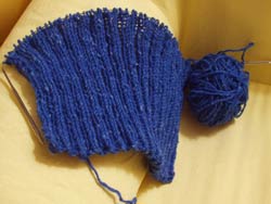And in an effort to move more of my too numerous wips along, I've begun to reknit the sleeve of my bumpy blue phildar sweater. I'll be knitting the sleeves straight, giving up the bell sleeves in the hopes that the yarn will hold out. I'm not feeling too confident though, especially since I'm trying to save my good yarn karma for Banff! Think the yarn gods will look more kindly upon me if I buy more of this yarn in a different color to make another bumpy phildar sweater??