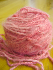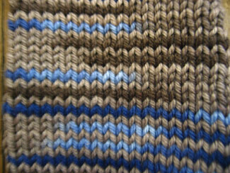 And I snipped off a repeat of my hand-dyed Kool-Aid yarn (before giving it to my best knitbud, Lisa, for her birthday) to see how it knits up. Stripey goodness!